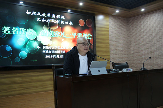 2018年2月2日晚,百花文学奖获得者、广西作家协会副主席、著名作家、著名编剧凡一平“文学与影视”讲课会在河池市民族图书馆一楼作家馆举行。本次讲课会由河池市民族图书馆、河池市文联联合主办,共吸引了一百多名读者、文学爱好者前来参加听课。