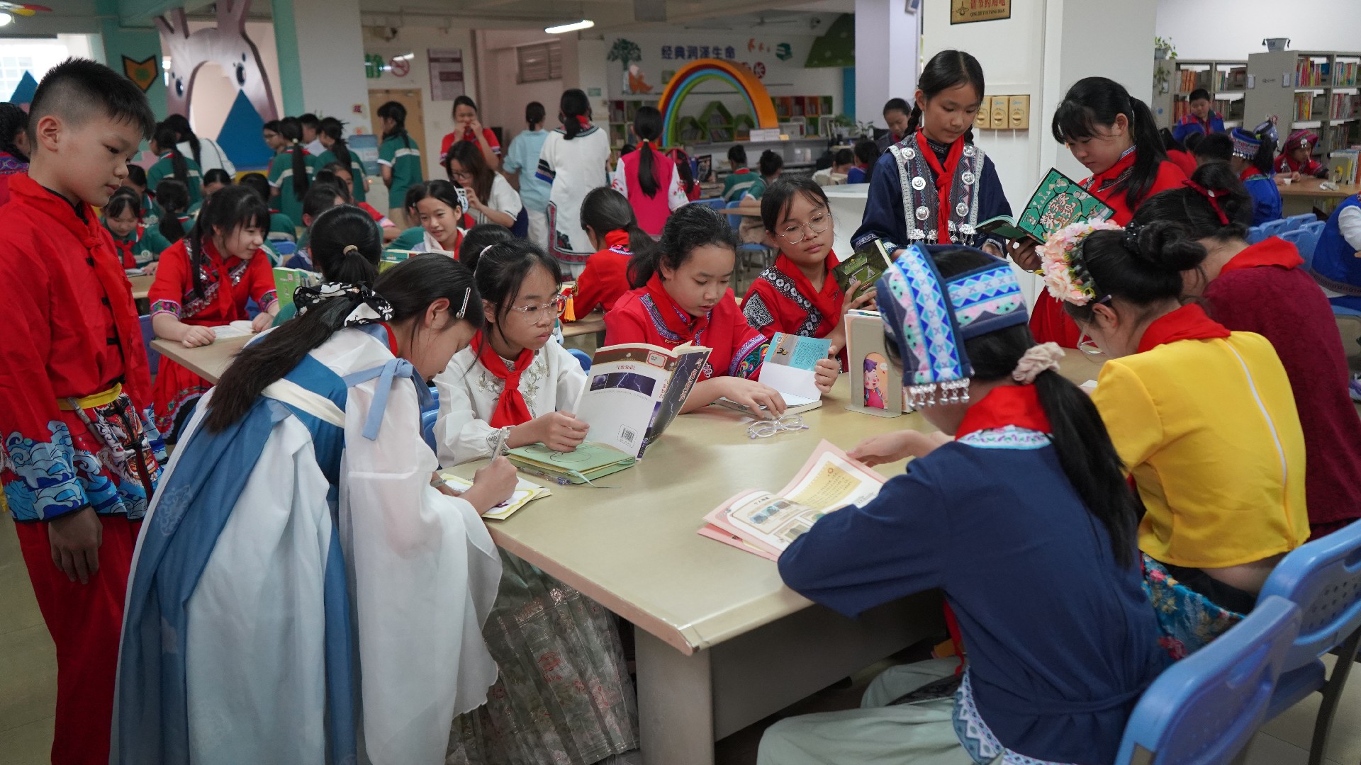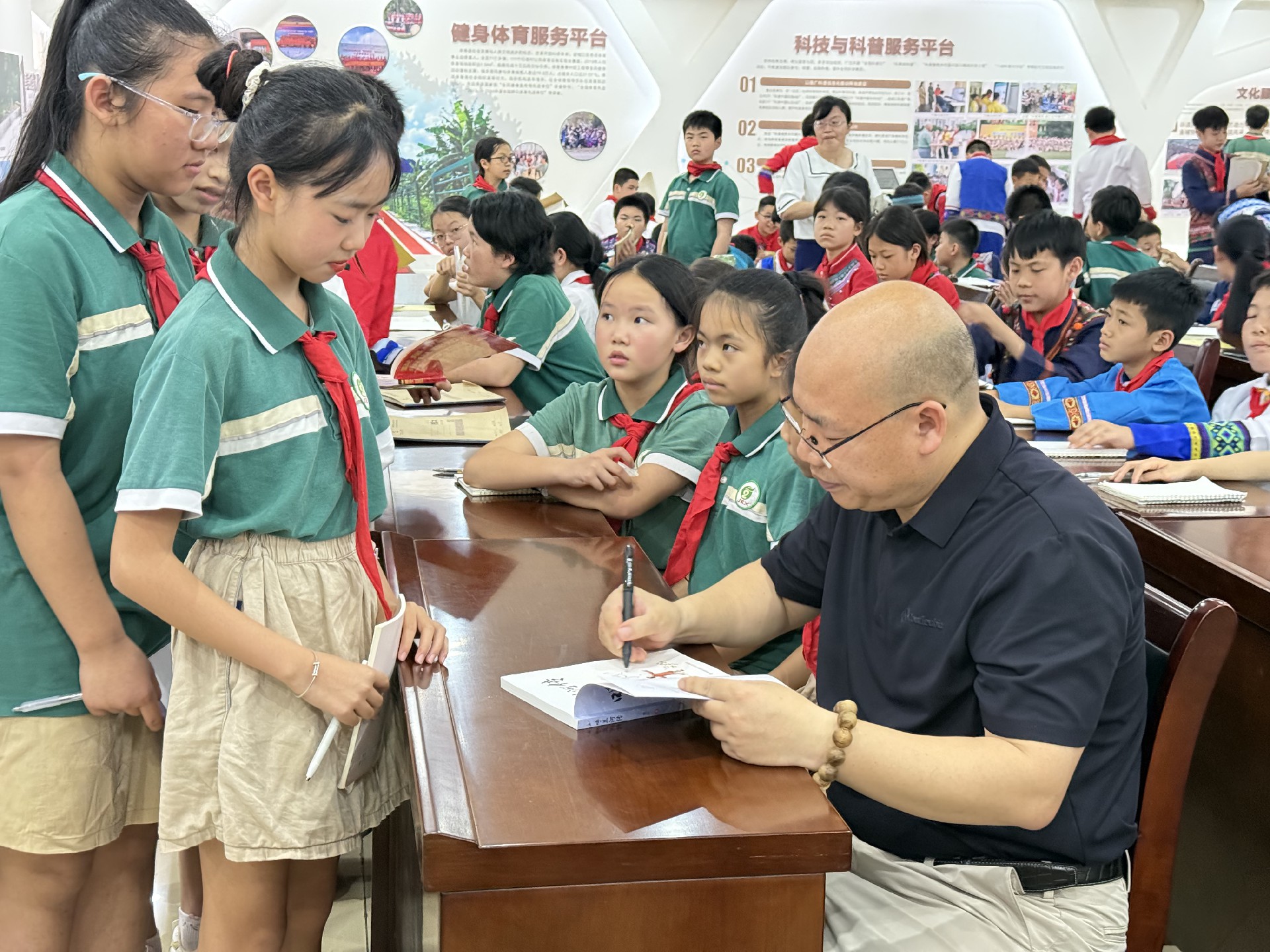 今年是《全民阅读促进条例》颁布实施的第一年,为积极响应国家号召,深入倡导全民阅读理念,推动书香社会建设,营造“爱读书、读好书、善读书”的浓厚氛围,4月16日上午,河池市民族图书馆迎来金城江区第二小学五年级200多名师生,共同开展“书香润童心 名家伴成长”名家阅读分享暨写作交流活动,让孩子们在图书馆邂逅书香、对话名家,在阅读与交流中收获成长与力量。