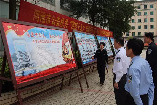 池市民族图书馆与市公安局一直以来都是长期的文化共建合作单位,2014年,两家曾深度合作举行了第二届河池市公安系统优秀书画、摄影作品展,收到了良好的社会效应。2017年10月16日,为了迎接党的十九大胜利召开,两家再次合作在市图书馆大楼前及一楼展厅内举行主题为“河池市公安机关‘迎接十九大 忠诚报平安’公安工作成果暨美术、书法、摄影展系列活动。”