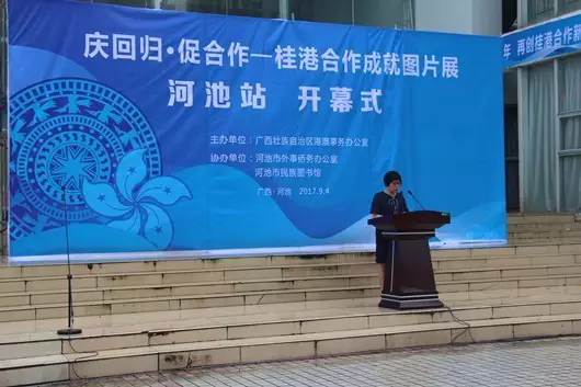 为庆祝香港回归祖国20周年,由自治区港澳办主办,河池市外事侨务办及市民族图书馆协办的“庆回归·促合作—桂港合作成就图片展”于9月4日至10日在我市民族图书馆一楼大厅展出。