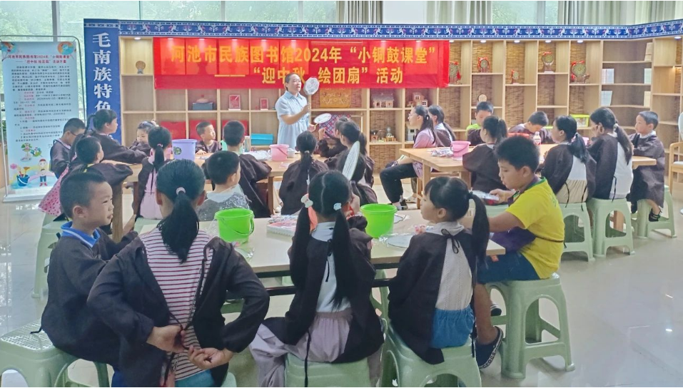 为进一步弘扬中华优秀传统文化,营造节日浓厚气氛,9月15日,河池市民族图书馆在本馆毛南族特色阅读空间组织开展以“小铜鼓课堂”——“迎中秋 绘团扇”为主题的手绘团扇活动,共计29名小···